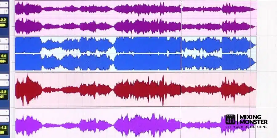 Balancing tracks involves adjusting levels, panning, and dynamics to create a harmonious mix. Waveforms provide a visual guide to these elements, helping to achieve a balanced and cohesive sound.